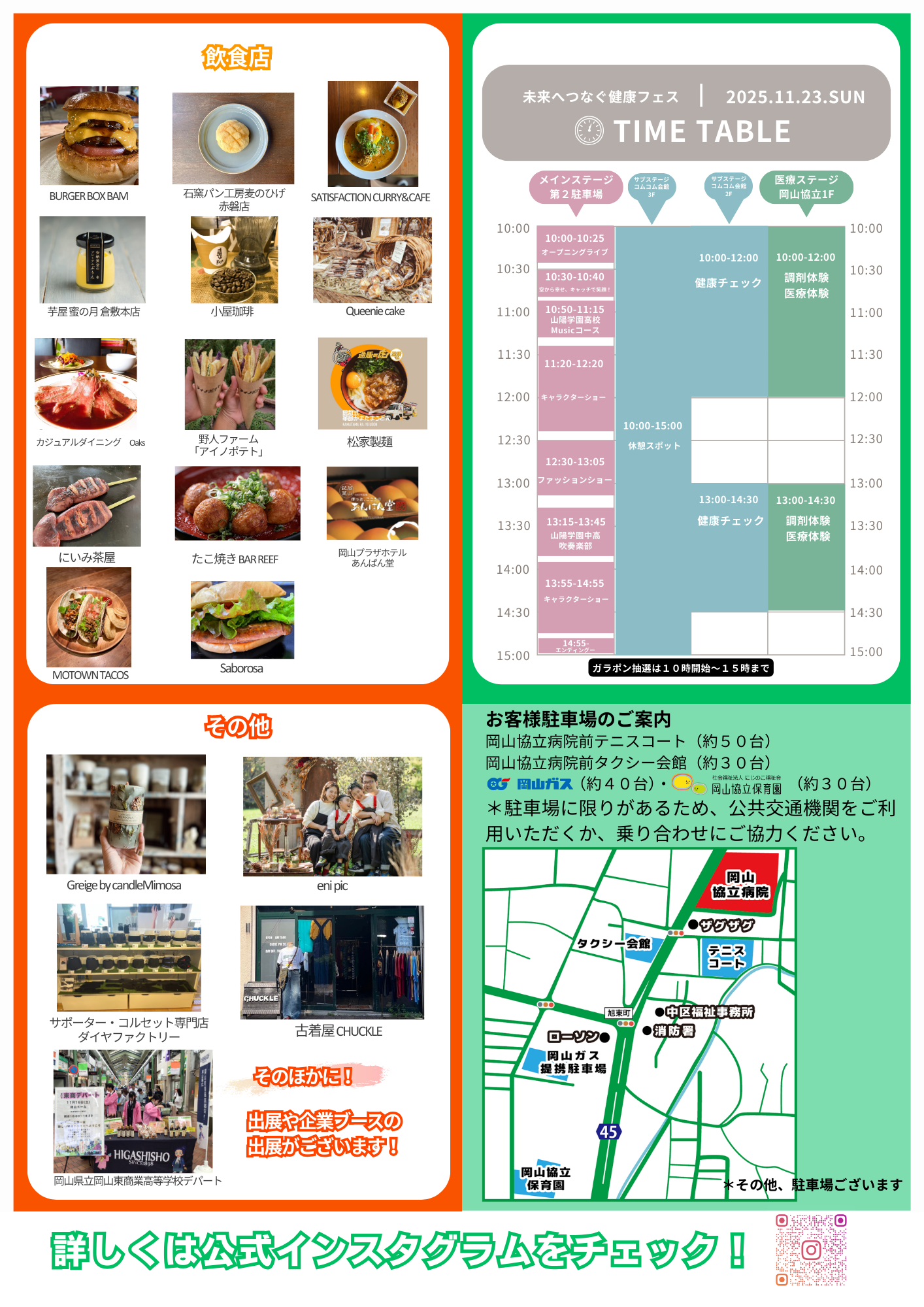 岡山協立病院主催で健康をテーマにしながら“遊べる・食べる・学べる”を全部楽しめる、地域最大級の健康フェスです。
