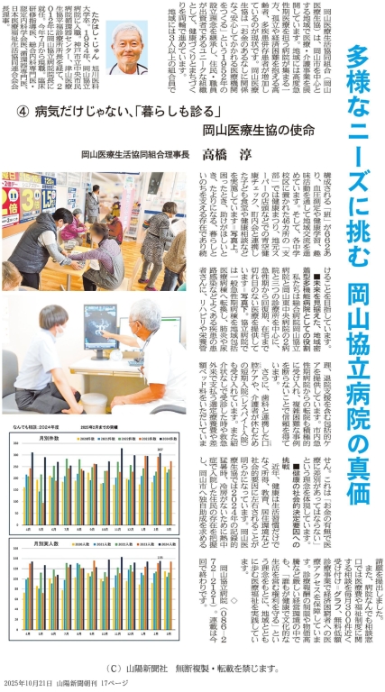 病気だけじゃない、「暮らしも診る」岡山医療生協の使命について、山陽新聞Medicaに掲載されました。「未来を見据えた、地域密着型多機能病院としての役割」をご紹介いただいています。