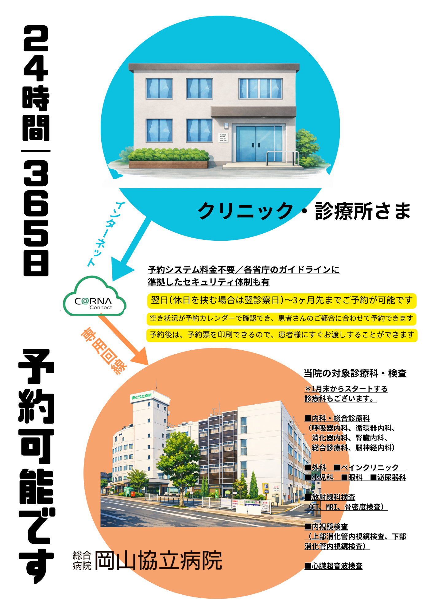 ※一部の診療科および検査のみ。その他診療科などは1月末からスタートします。