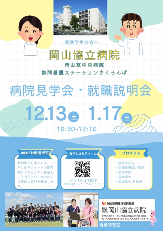 12月13日(土)、1月17日(土)病院見学会・就職説明会を開催します。