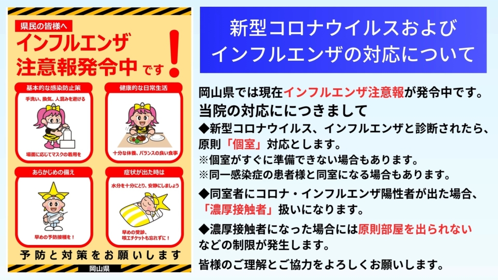 全国的にも新型コロナウイルス、インフルエンザが流行しており、病棟においても感染が広がっています。